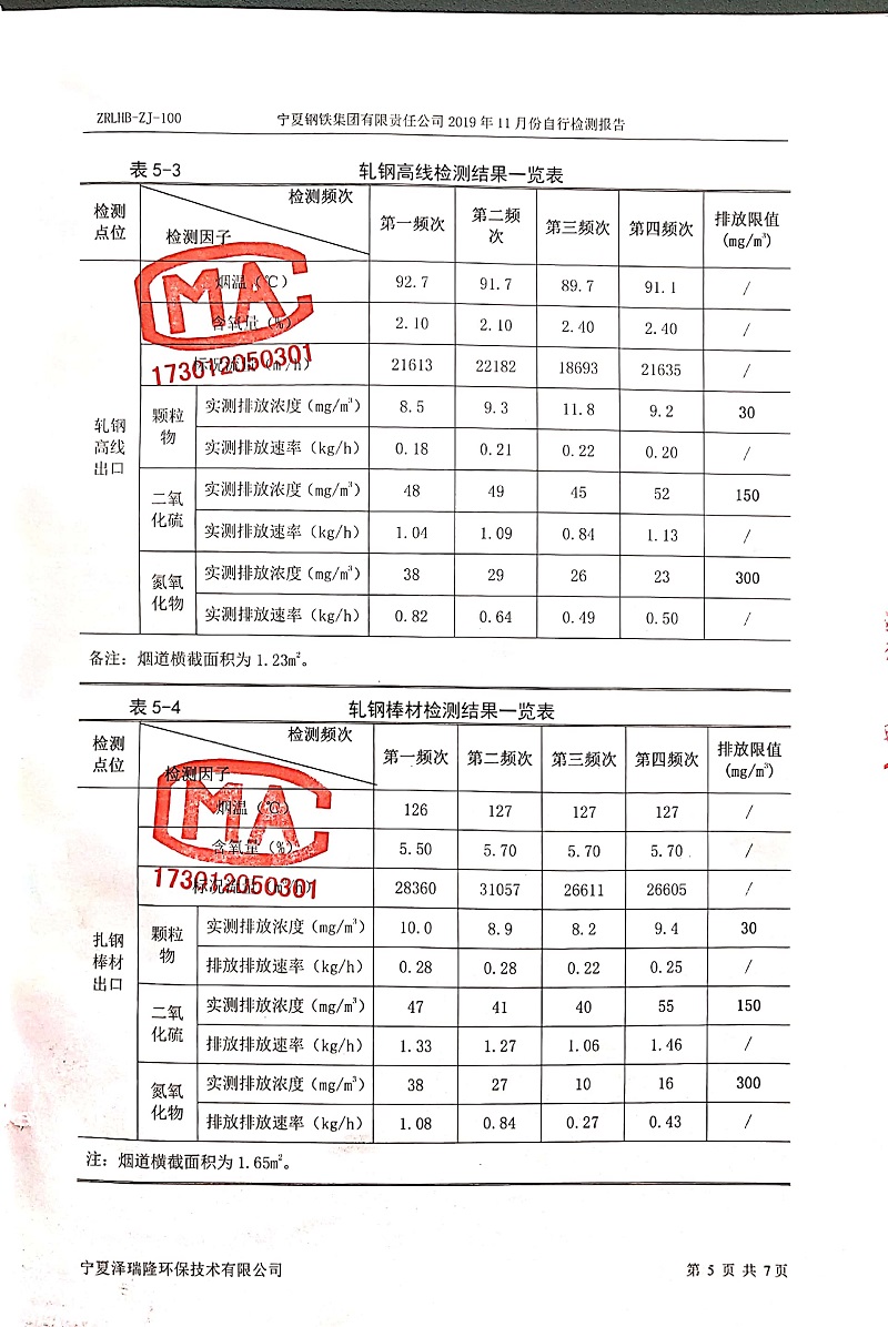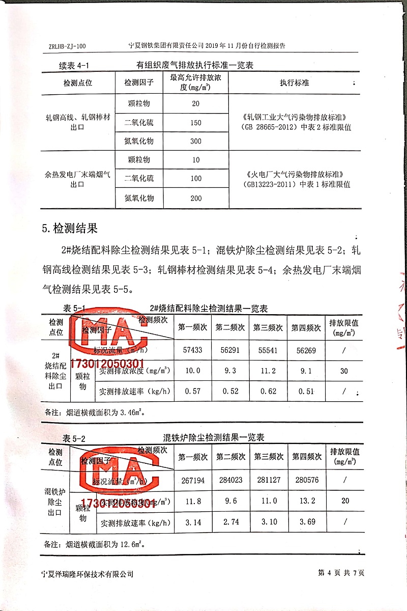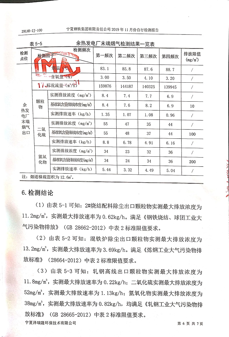 寧鋼2019年11月份自行檢測(cè)報(bào)告
