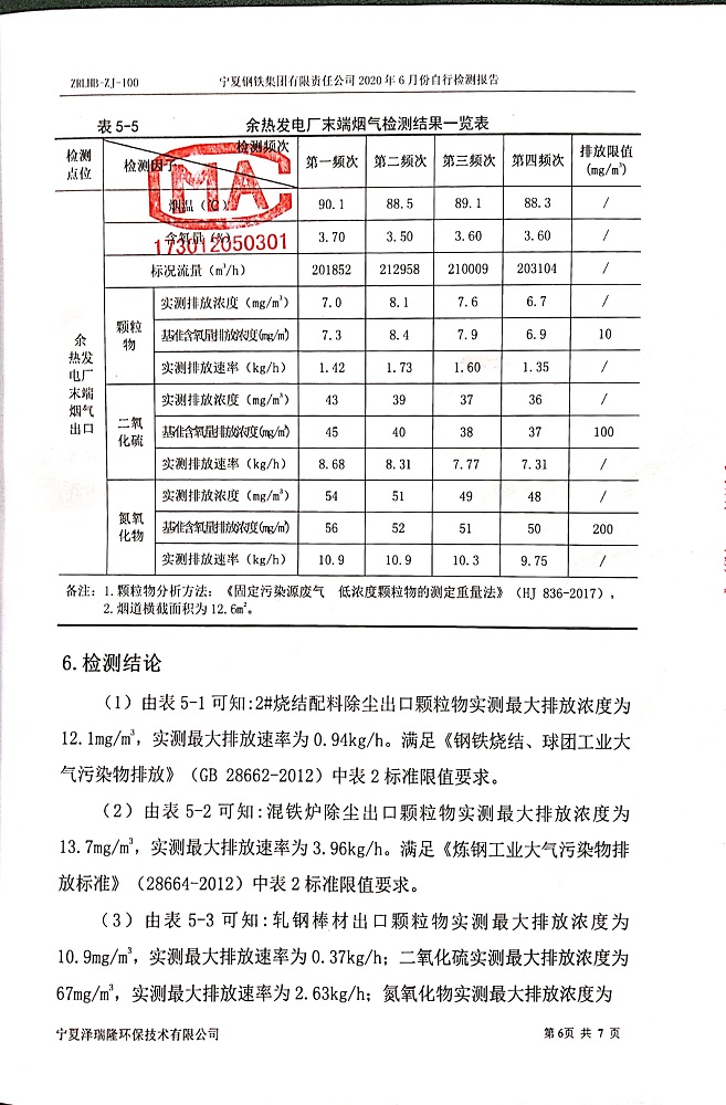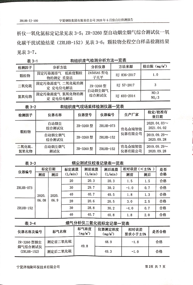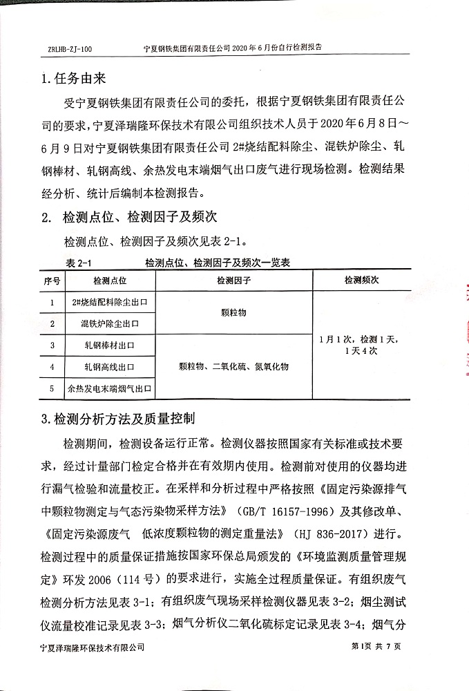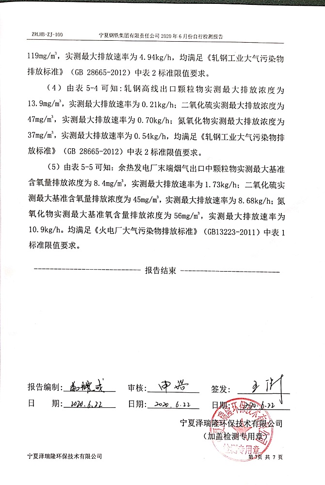 寧鋼2020年6月份檢測(cè)報(bào)告