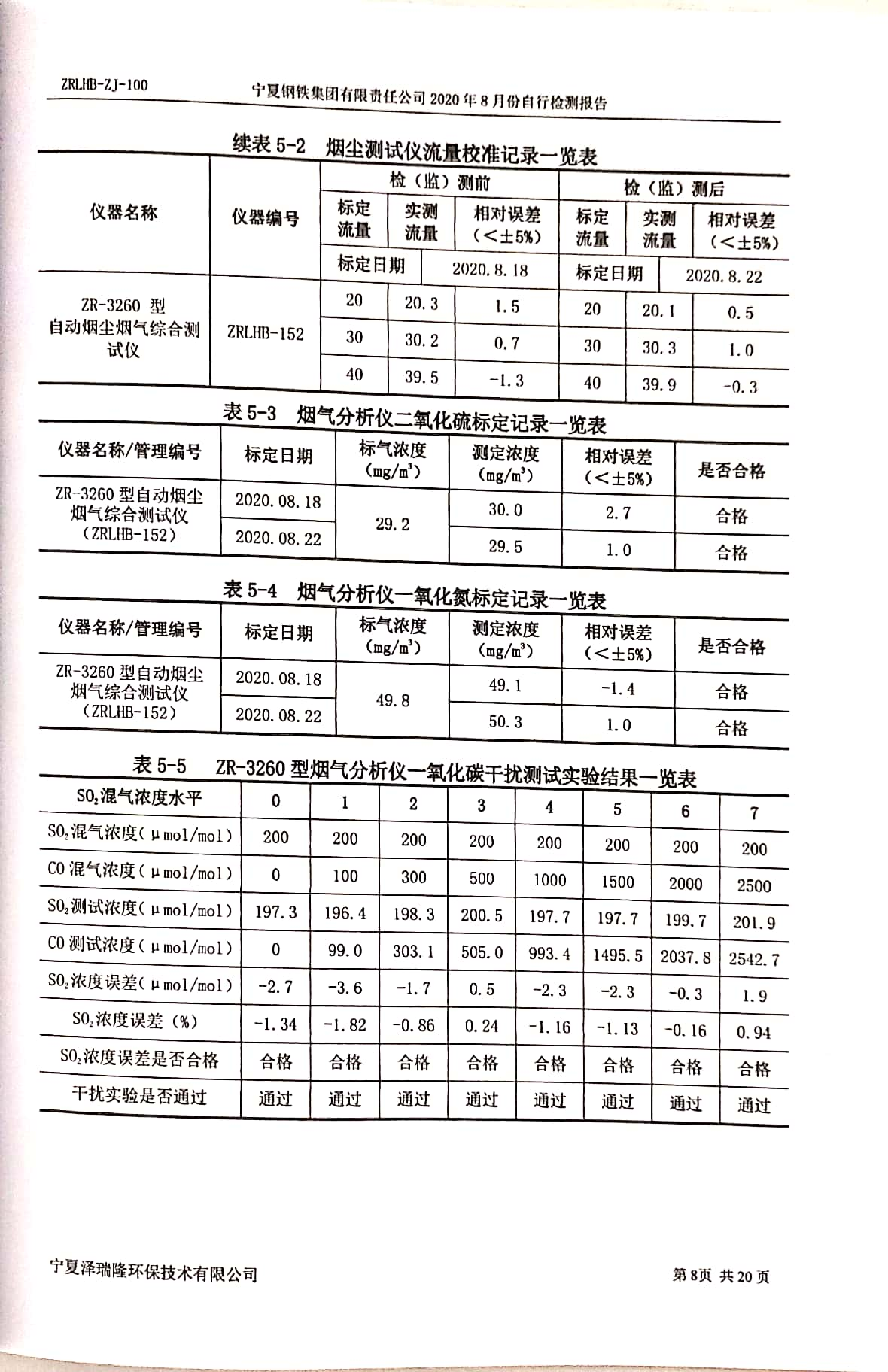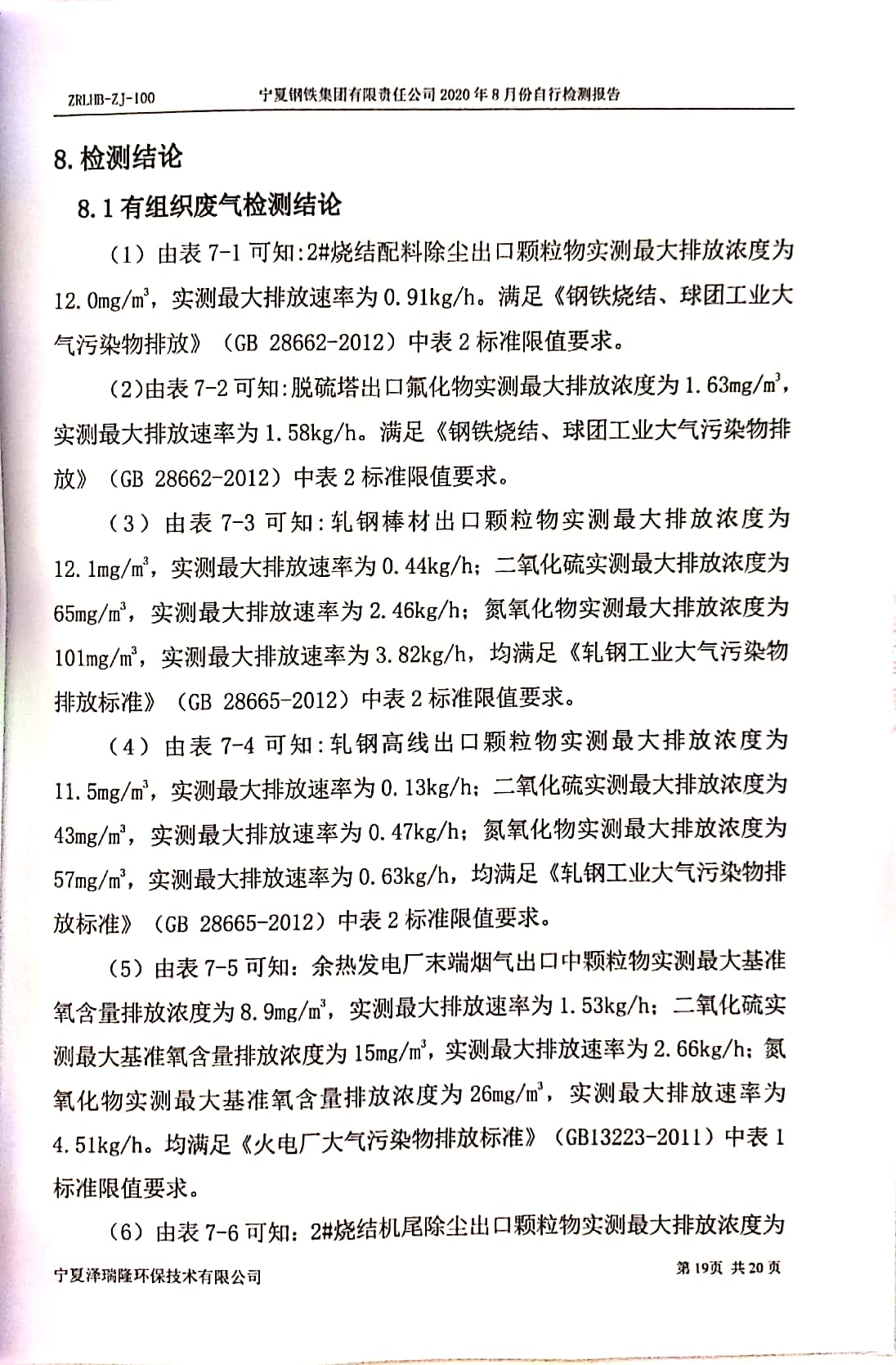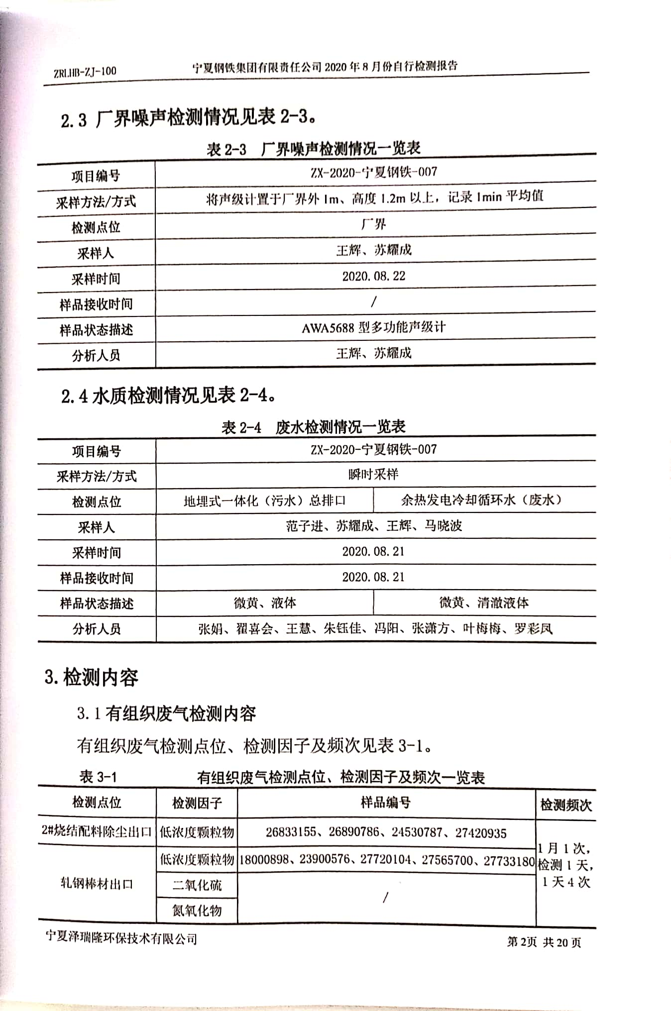 2020年8月自行檢測報告