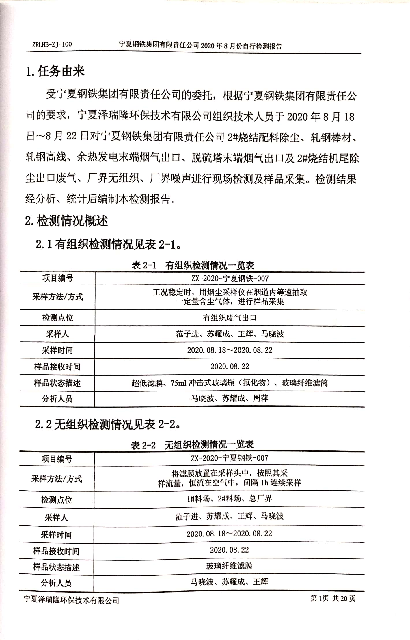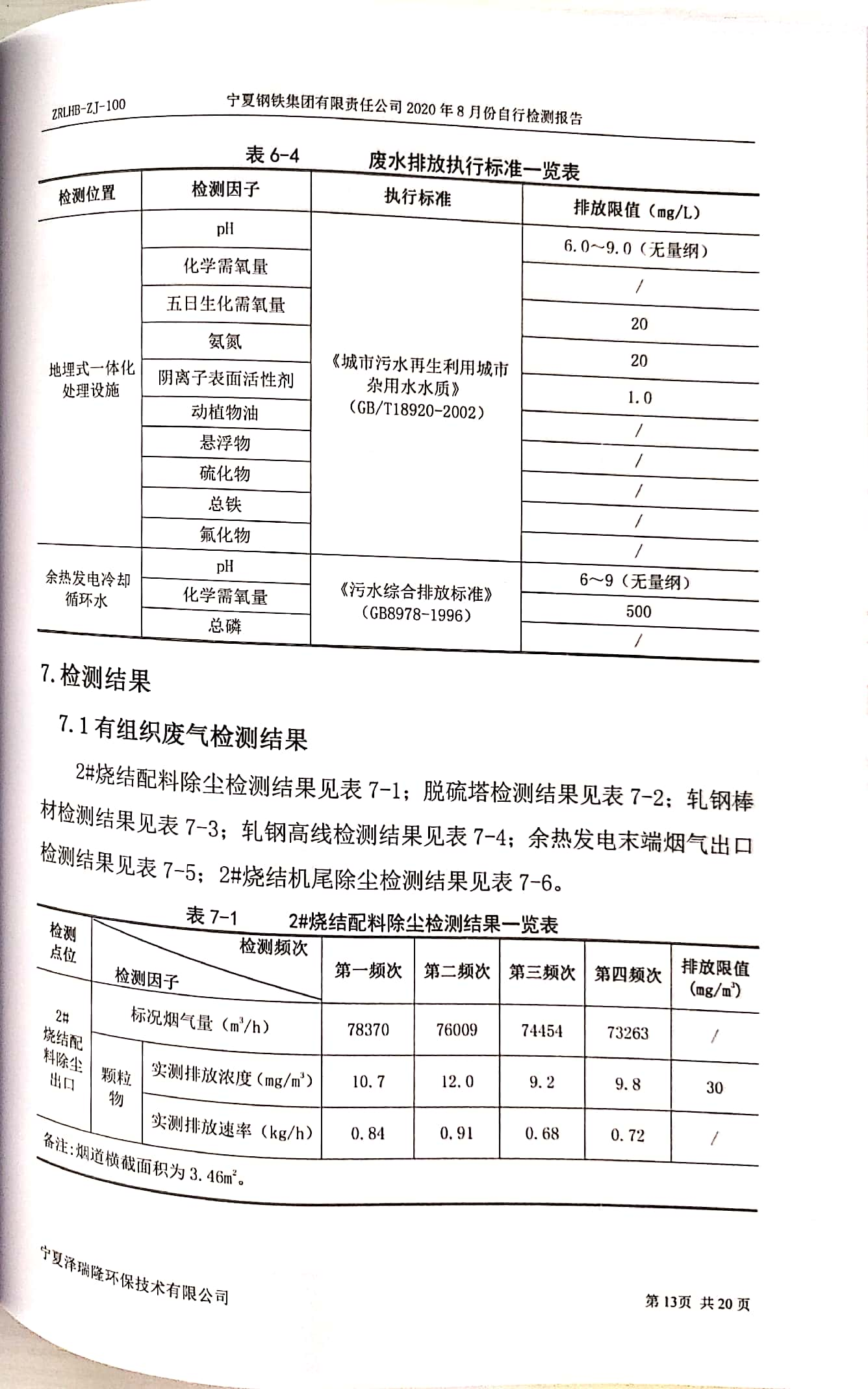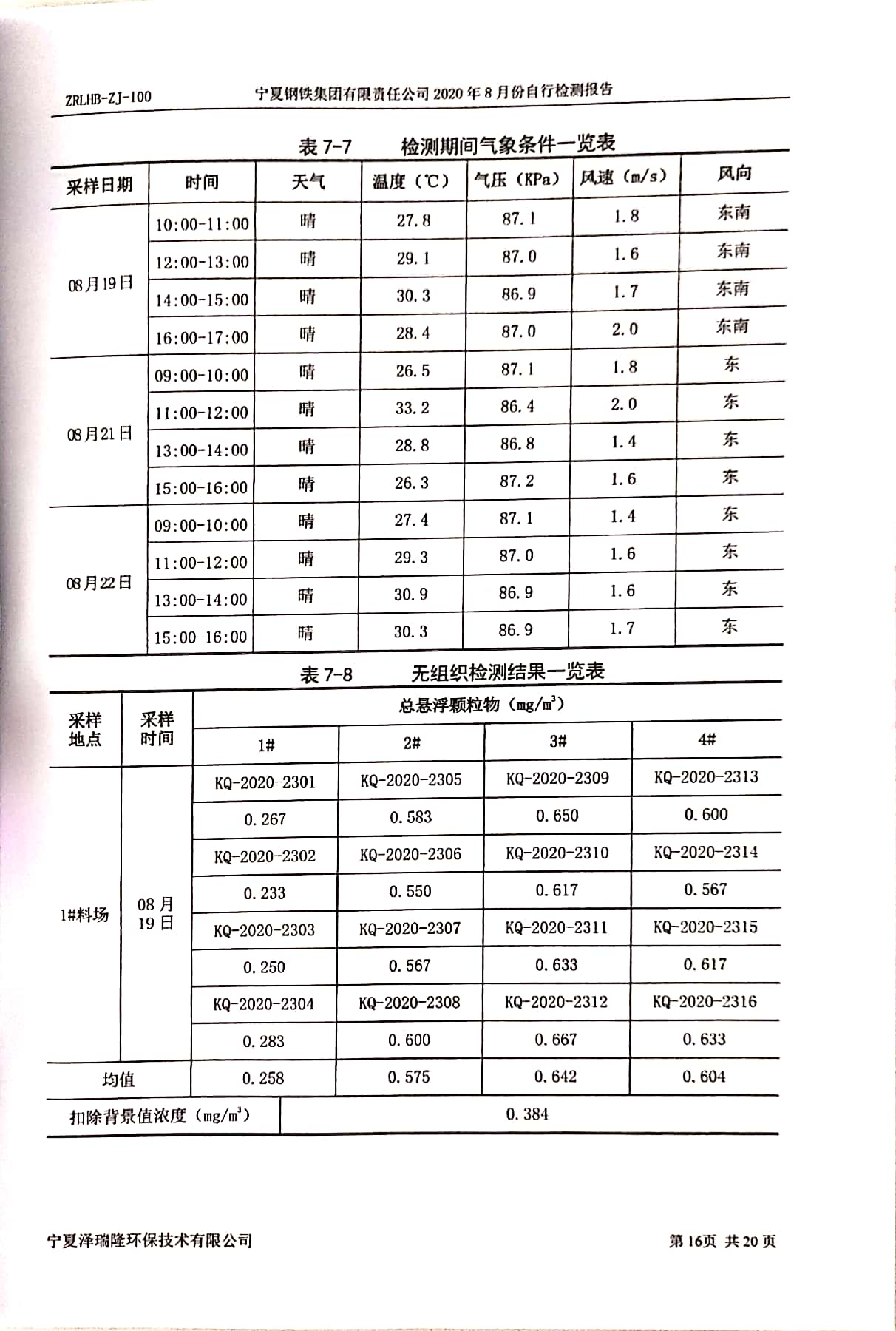 2020年8月自行檢測報告