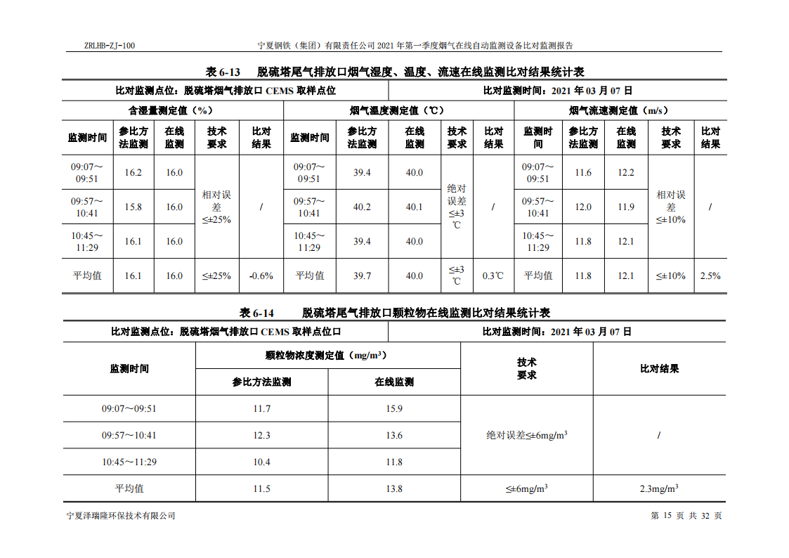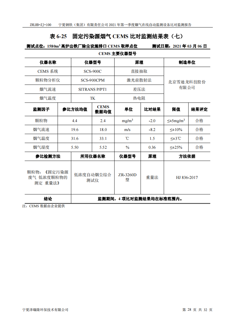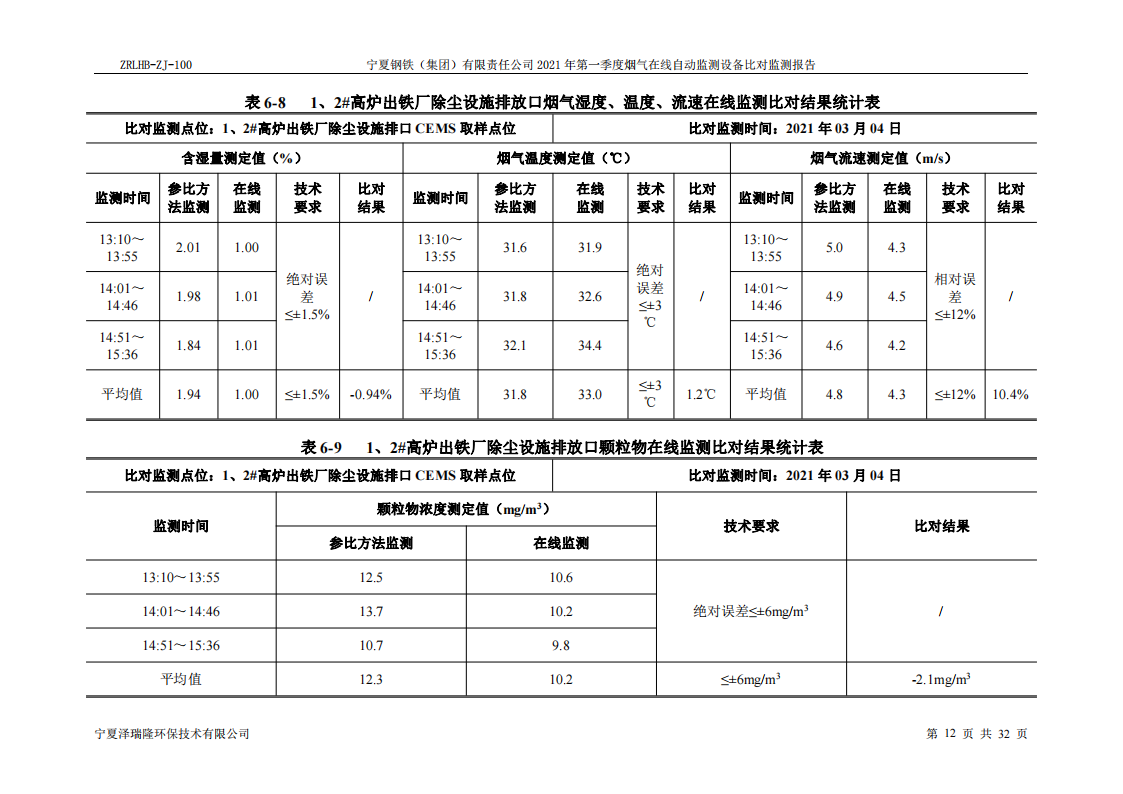 第一季度自行檢測(cè)報(bào)告
