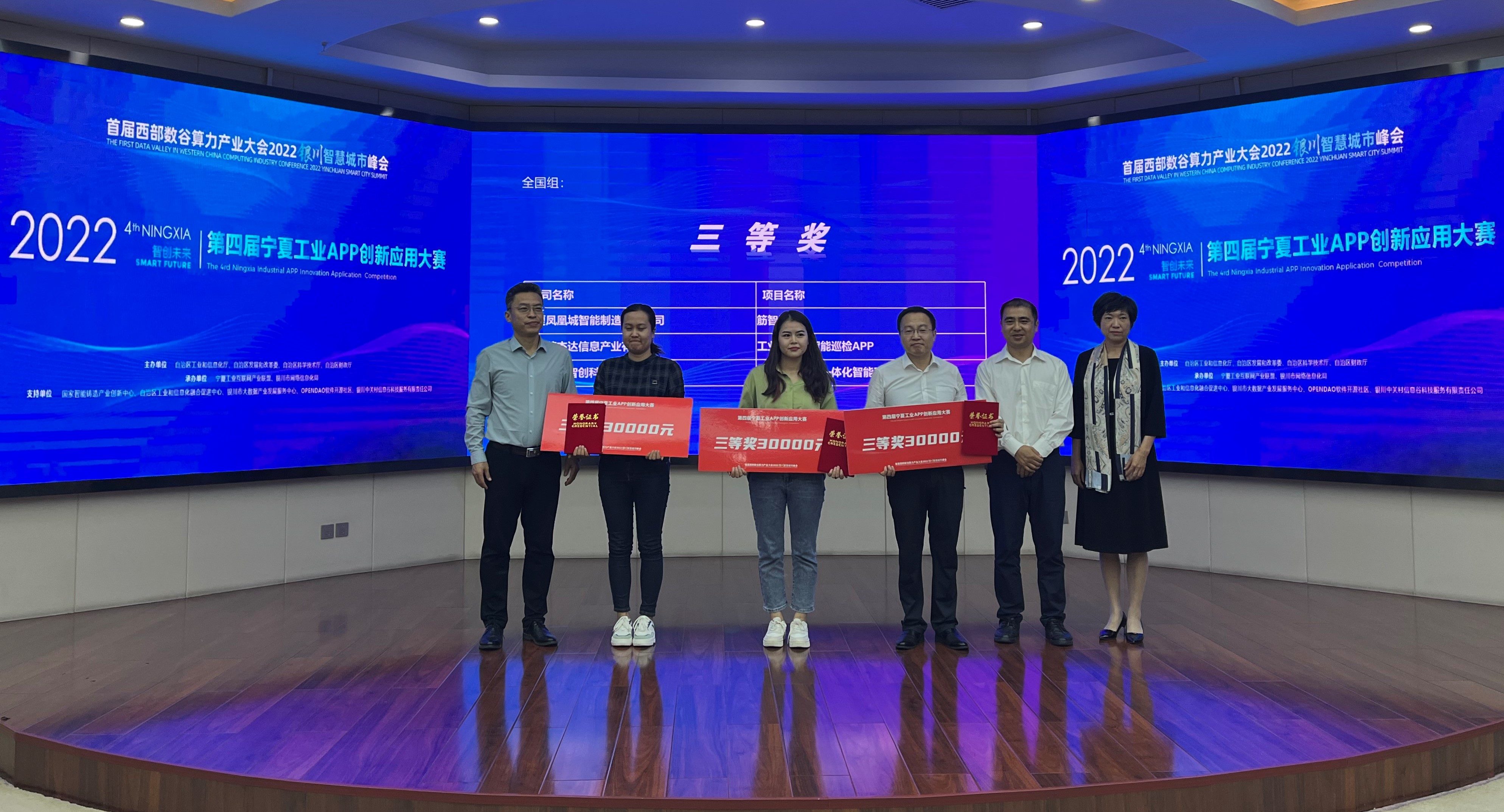本次大賽,由公司總經(jīng)理助理兼研發(fā)中心主任袁自峰率領(lǐng)團隊代表寧夏鳳凰城智能制造有限公司參加決賽路演,通過對公司開發(fā)的“筋智云”APP的項目背景、商業(yè)和運營模式、產(chǎn)品特色和核心優(yōu)勢、工業(yè)應(yīng)用場景和案例等內(nèi)容的詳細介紹,經(jīng)過一天的激烈角逐,最終,“筋智云”APP榮獲本次大賽全國組三等獎及寧夏組二等獎。